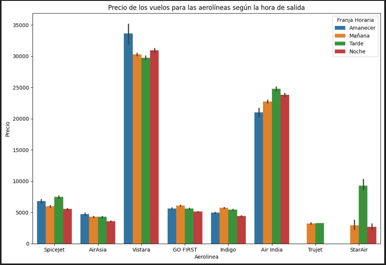 ➡️Se concluye que todos los precios predichos son razonables, ya que está dentro del rango histórico y son menores que el precio promedio, lo cual es esperado para un vuelo con estas características. ✅